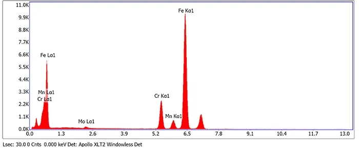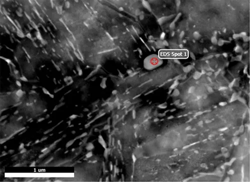 In the calculation, back diffusion of carbon and nitrogen as well as the peritectic reaction is considered. In A Scanning TEM image shows contrast related to different atom masses of the same region (see Fig. 2). The chemical composition of the particle marked as “EDS spot 1” is a Cr-rich carbide. Its EDX spectrum is shown in Fig. 3.