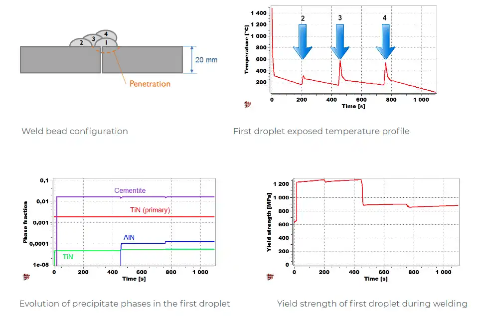 Simulation of the yield strength of the first droplet of the filler material (Cr-Mo microalloyed steel) exposed to heat treatment effect of the other covering droplets.