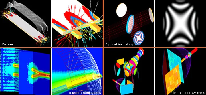 Display systems modeled in ASAP using pre-defined system components, custom geometry created with the Array Wizard, and CIE/chromaticity analyses.